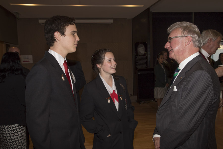 On Wednesday at the official launch of Catholic Education Week in Brisbane the two College Captains of Our Lady of the Southern Cross College, Dalby Madeleine Wunsch (Maddy) and George Harris had the opportunity to discuss their future career aspirations with his Excellency Governor Paul de Jersey.